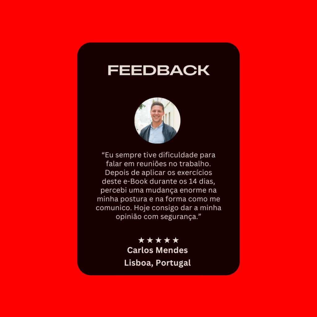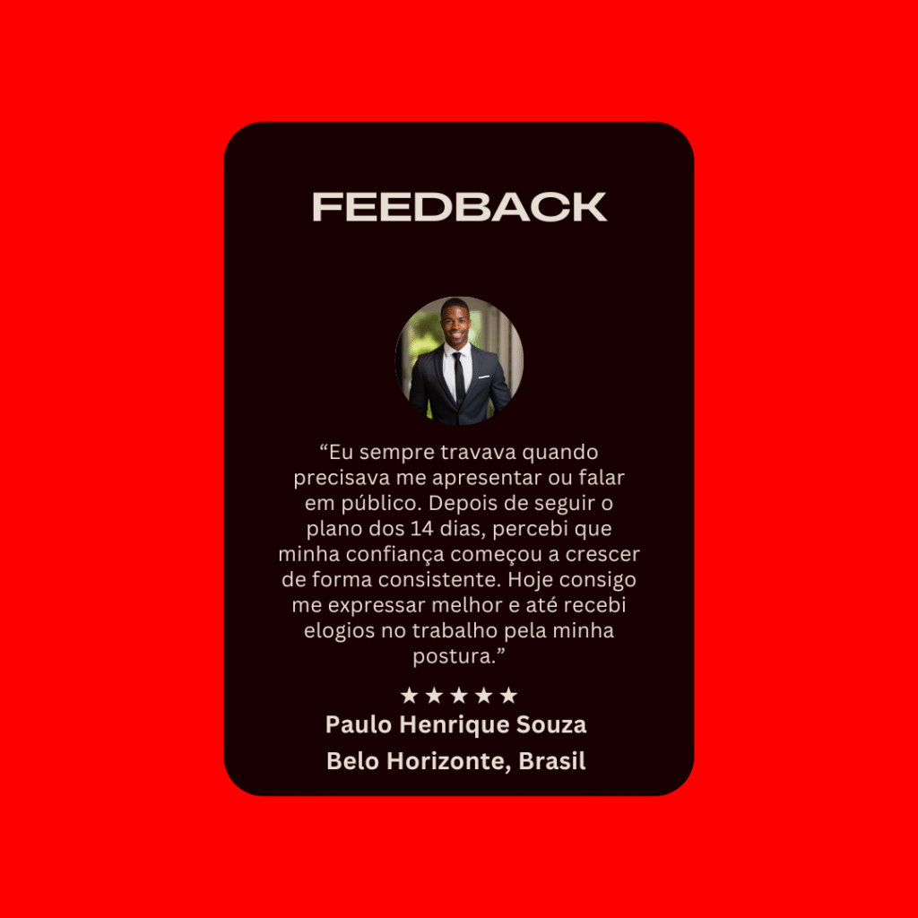 E foi a partir dessa descoberta que nasceu o método que transformou a minha forma de me comunicar — e que agora está dentro do e-Book “Como Superar a Timidez em Apenas 14 Dias.”